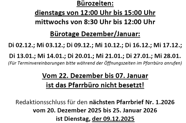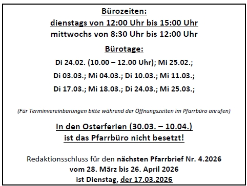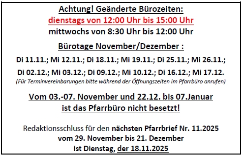 Pfarrbüro - die aktuellen Öffnungszeiten